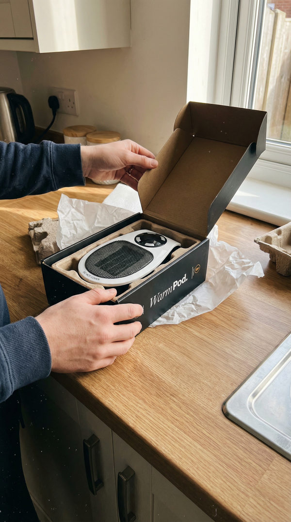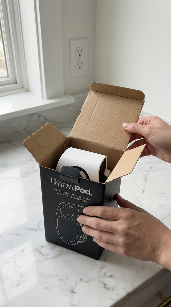 WarmPod is designed for zone heating—it warms the space around you (about 3–6 feet). Perfect for desks, bedsides, vanities, or bathrooms.